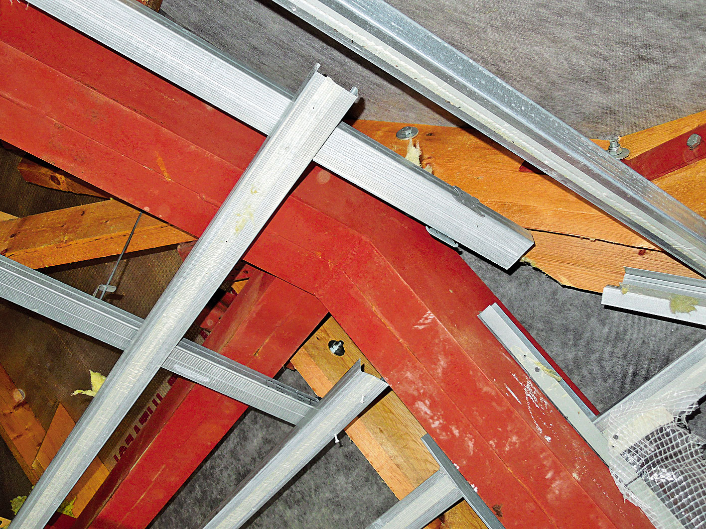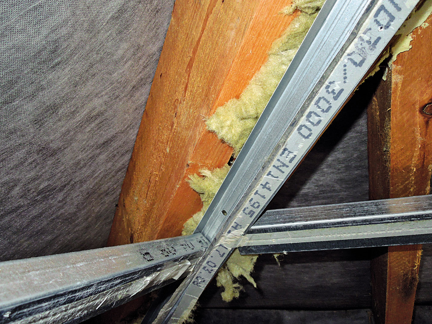 Obr. 5  Nedostatočné vyplnenie nosného roštu pod sadrokartón a napojenie profilov na exteriér vytvára prúdenie chladného vzduchu.