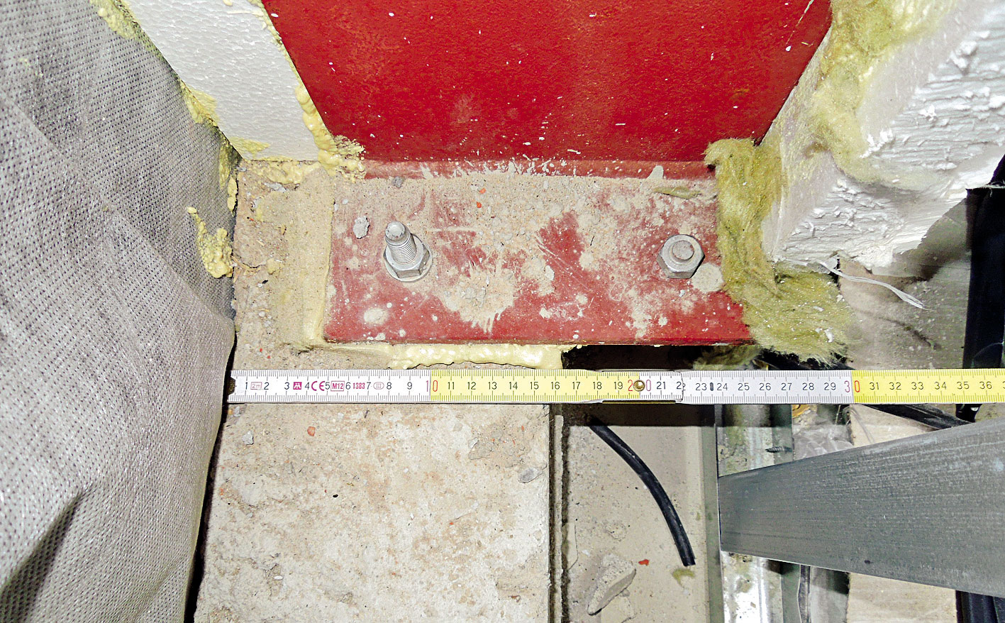 • nedostatočné zateplenie železobetónové­ho prahu (obr. 3) na kotvenie oceľového rámu strechy. Železobetónový prah nebol vo svojej zvislej časti teplne izolovaný, ale bol iba prekrytý difúznou fóliou;
