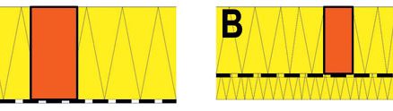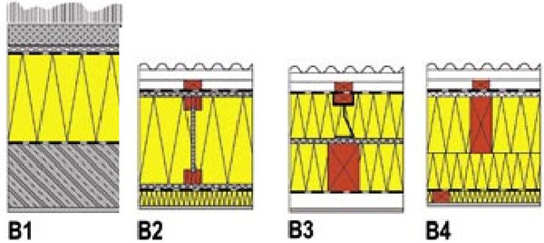 Obr. 3 Umiestnenie parobrzdy a parozábrany v konštrukcii strechy (A – nevhodná konštrukcia, B – vhodná konštrukcia)