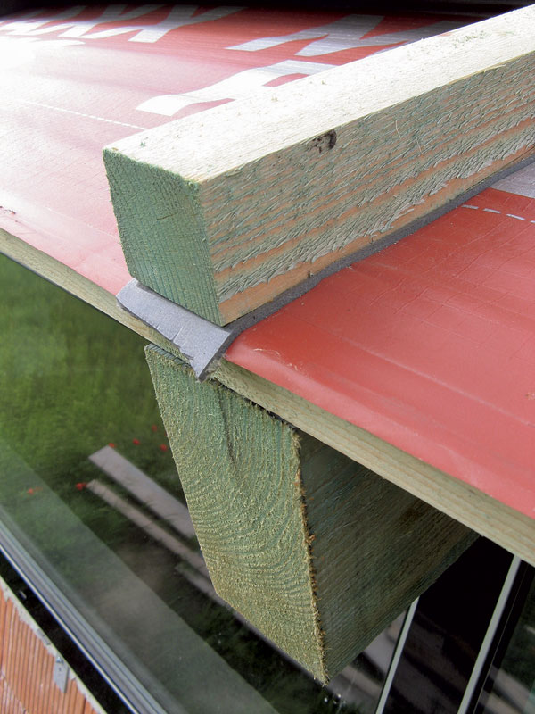 V prípade vetrotesnosti a zamedzenia ochladzovania tepelnoizolačnej vrstvy je dôležité prelepovanie spojov medzi jednotlivými pásmi (obr. 4b). Zvlášť dôležité z hľadiska parozábrany a poistnej hydroizolácie je zvládnutie detailov pri konštrukciách prestupujúcich cez strešný plášť, akými sú potrubie, komín, ale aj konštrukcia strešných okien a výlezov.