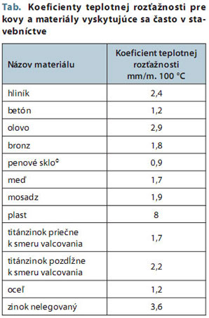 Nielen pri ich ukladaní v ploche, ale aj pri napojení na odkvap je nutné riešiť teplotnú rozťažnosť krytinových pásov (tab.). Zaťahovací pás je nutné vyhotoviť v závislosti od dĺžky krytinových pásov s predsadením 30 až 40 mm. Pri napojení krytinových pásov na takto pripravený odkvap treba na zabezpečenie teplotnej rozťažnosti krytinových pásov dodržať dištančný priestor. V štandardných prípadoch teda do 10 m dĺžky krytinových pásov treba realizovať predsadenie 8 mm. Na dosiahnutie rovnomerného predsadenia pozdĺž celého odkvapu sa odporúča používať dištančnú šablónu (obr. 2).