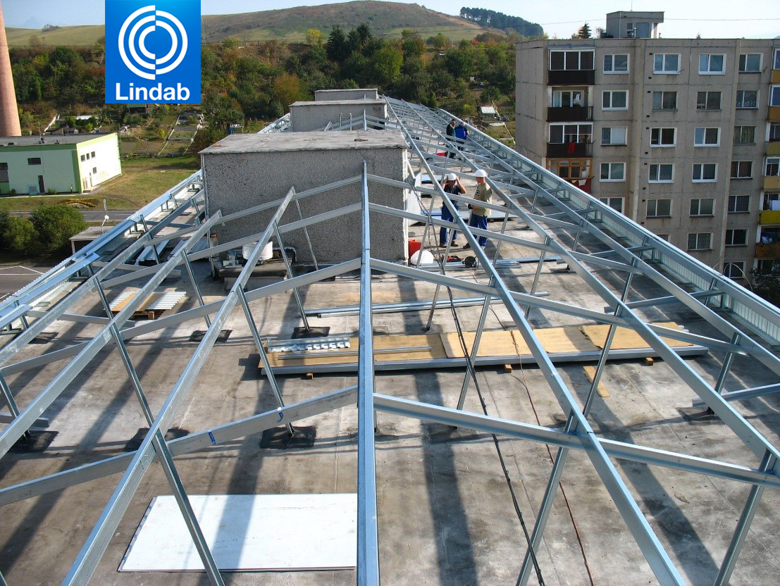 Systém zastrešenia pozostáva výlučne z komponentov Lindab, čo napomáha bezproblémovému vzájomnému fungovaniu. Zastrešenie plochých striech Lindab Roof predstavuje bez údržbový systém, ktorý sa navyše vyznačuje nehorľavosťou. Strešná krytina Lindab Coverline je k dispozícii v 17 farebných odtieňoch. Pozitívom je i možnosť dodatočného zateplenia strechy, jednoduchou pokládkou tepelnej izolácie v novovytvorenom podstrešnom priestore. Okrem toho je dôležité vedieť, že súčasťou dodávky je kompletný návrh systému a vypracovanie statických prepočtov pre projektanta ako aj dielenskej dokumentácie pre montážnu firmu.