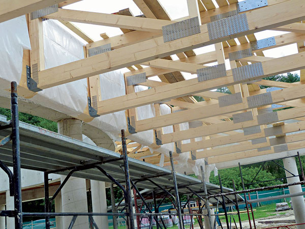 Drevo sa musí ošetriť proti drevokazným hubám. To sa vykonáva priamo vo výrobe. Z hľadiska požiarnej ochrany je drevo nevyhnutné ošetriť dodatočným náterom. Na drevené prvky použité na zastrešenie wellness sa naniesol transparentný náter Planostop, a to na predpísanú požiarnu odolnosť, ktorá sa určila v projekte požiarnej bezpečnosti. Všetky použité spojovacie prvky musia byť antikorové.