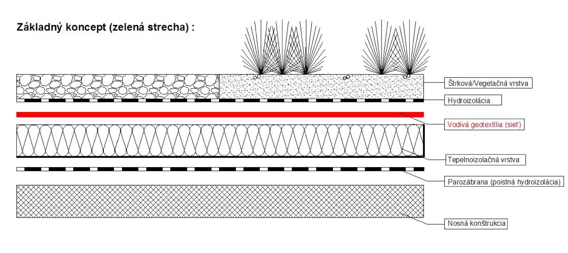 Detail základného konceptu (vegetačná/hnedá strecha)