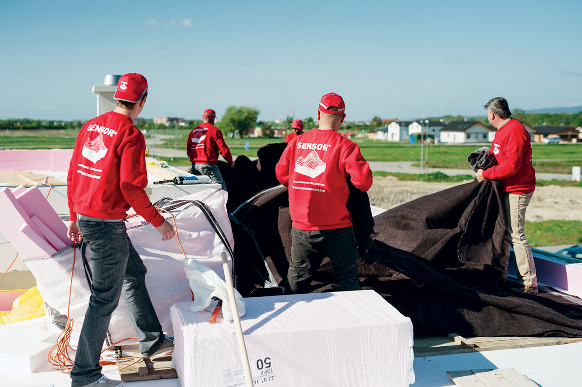 - vo zvaroch hydroizolačnej fólie,