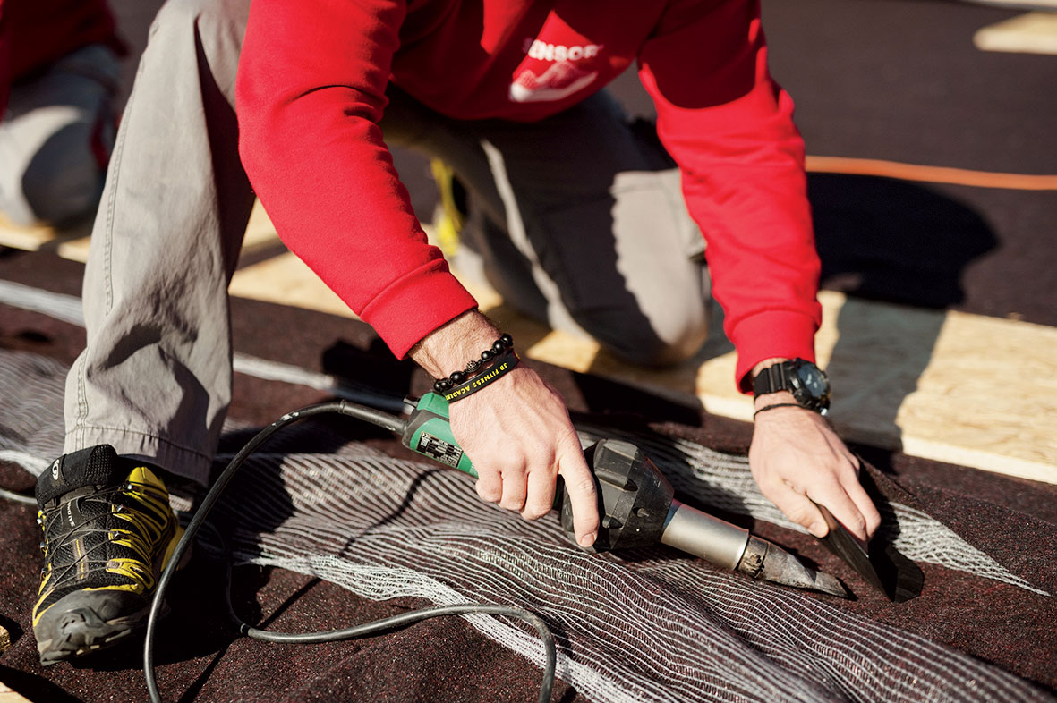 Vodivá geotextília je vhodnou alternatívou namiesto klasickej geotextílie, takže po inštalácii vodivej vrstvy nie je potrebná inštalácia nevodivej geotextílie. Jej aplikácia je však pre vodivú vrstvu špecifická. Skladá sa z dvoch vrstiev netkanej polypropylénovej/polyesterovej geotextílie s rôznou hmotnosťou, medzi ktorými sa nachádza tretia vrstva – vodivá sieť. Ako teda správne postupovať pri jej inštalácii?