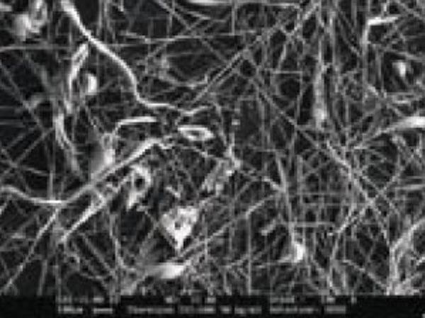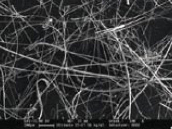 | Obr. 1 Mikroskopická zväčšenina základného materiálu tepelnej izolácie na báze sklenej vlny (vľavo) a čadičovej vlny (vpravo) | |