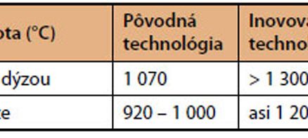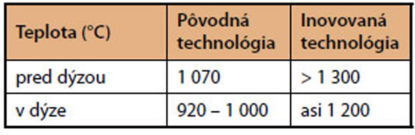 Inovácie v technológii výroby so sebou priniesli predovšetkým patentovanú konštrukciu odstreďovacej dýzy, ako aj zmenu teploty pri odstreďovaní vlákna, ako je to uvedené v tab. 1.
