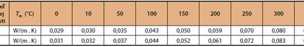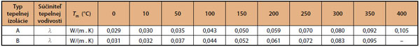 Tab. 2 Závislosť charakteristickej hodnoty súčiniteľa tepelnej vodivosti od teploty materiálu na báze sklenej vlny s porovnateľnou objemovou hmotnosťou 60 kg/m3 (A) a materiálu na báze čadičovej vlny s porovnateľnou objemovou hmotnosťou 100 kg/m3 (B)