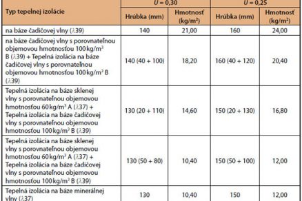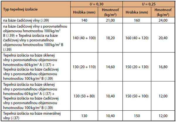 V tab. 4 sú uvedené zodpovedajúce hrúbky tepelných izolácií pre jednoplášťové ploché strechy.