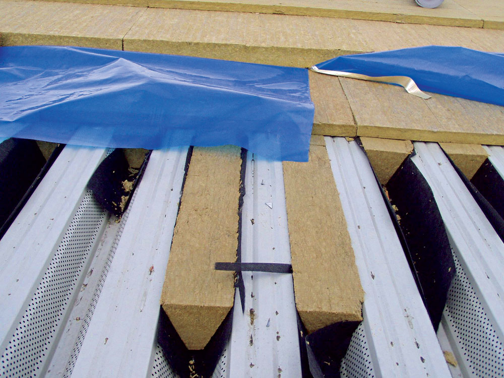 Obr. 5 Na zvýšenie akustickej a tepelnej pohody sa trapézový plech vypĺňa špeciálnymi klinmi na báze minerálnej vlny.