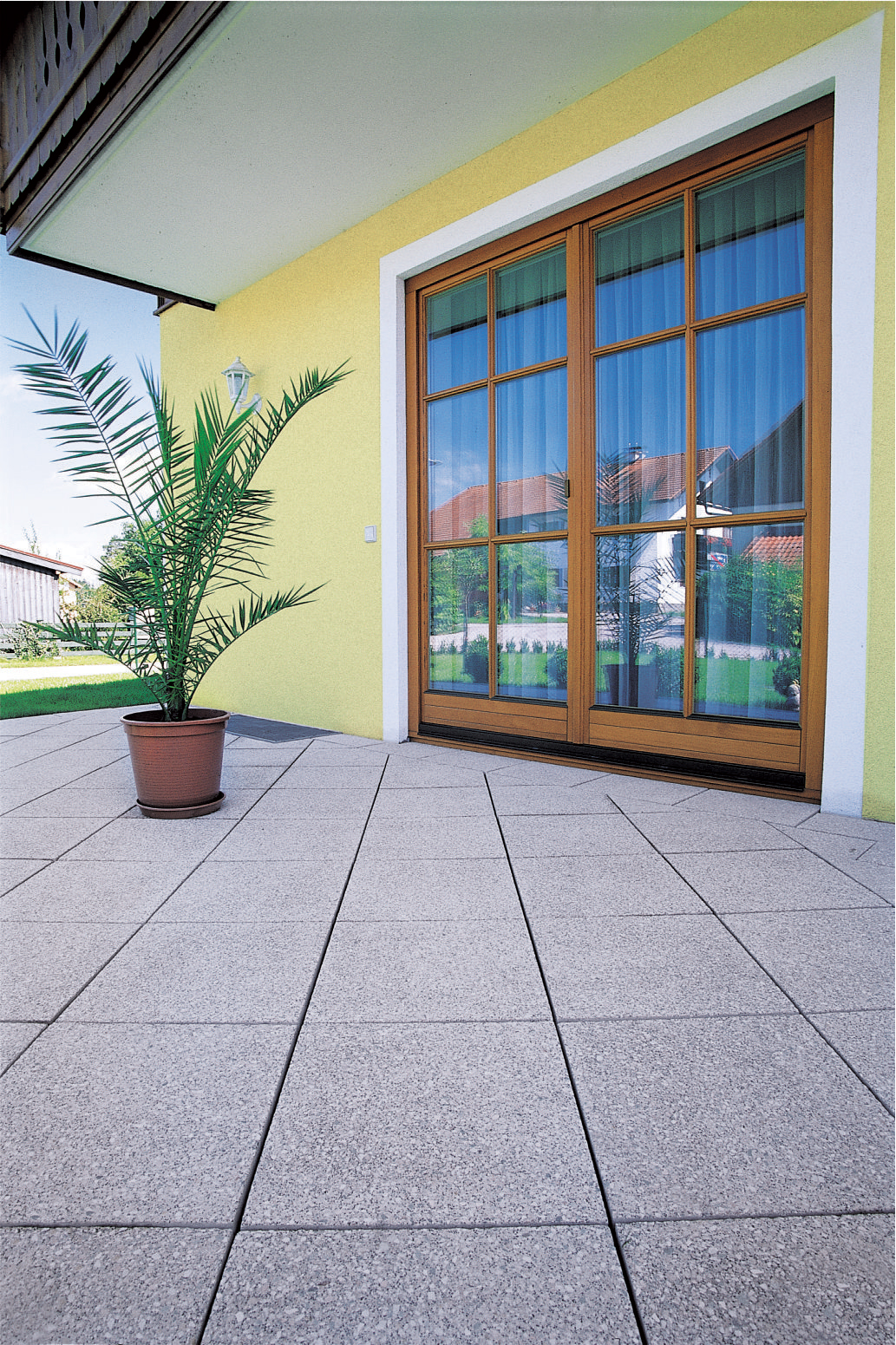 Exteriérové terasy patria k najobľúbenejším častiam domu, kde sa dajú príjemne tráviť chvíle s rodinou či priateľmi hlavne v letnom období. Vhodný výber dlažby na terasu ovplyvní celkovú symbiózu s architektúrou domu i so záhradnou výsadbou. Veľké spevnené plochy efektívne vydláždi betónová veľkoformátová dlažba.