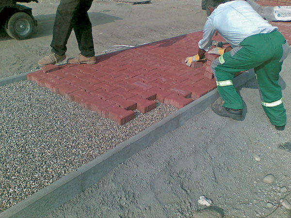 Betónová dlažba sa na rozdiel od kamennej kladie opačne, to znamená z už položenej plochy na vopred pripravené lôžko. Ukladaním dlažby do lôžka sa odstraňuje povolená výrobná tolerancia nepresnosti hrúbky jednotlivých dlaždíc. Hrúbku lôžka stanovuje normatívny predpis. Po zhutnení by mala byť 30 až 50 mm. Materiál použitý na vytvorenie lôžka by mal mať takú zrnitosť, aby sa pri ukladaní a zarovnávaní dlažby mohol dostať do škár medzi dlažobné tvárnice, ale aby do neho nemohlo vnikať škárovacie kamenivo. Pri pokladaní je vždy dôležité dodržiavať pokyny výrobcu, predovšetkým predpísanú šírku škár a striedanie dlaždíc z viacerých paliet. Tým sa zabezpečí rovnomerné rozloženie dlaždíc s malými farebnými rozdielmi, ktoré prirodzene vznikli pri zretí dlažby, ako aj lepší estetický vzhľad čerstvo položenej plochy. Pri strojovom kladení túto podmienku nemožno splniť, ale aj pri tomto spôsobe pokladania dlažby by sa malo minimálne dodržať pravidlo jej kladenia z viacerých paliet, aj keď po celých vrstvách.