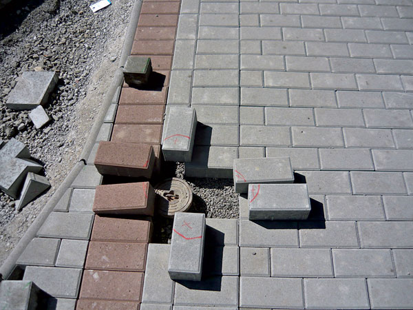 - nekvalitná práca pri realizácii plôch (rovinnosť plôch, škáry medzi dlažobnými tvárnicami v tolerancii 3 až 5 mm, nedodržanie maximálnych tolerancií jednotlivých vrstiev podložia, nedodržanie technologických postupov pri realizácii podložia, nedostatočné hutnenie),