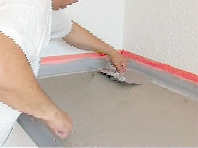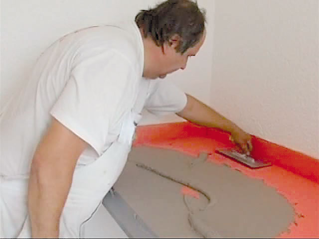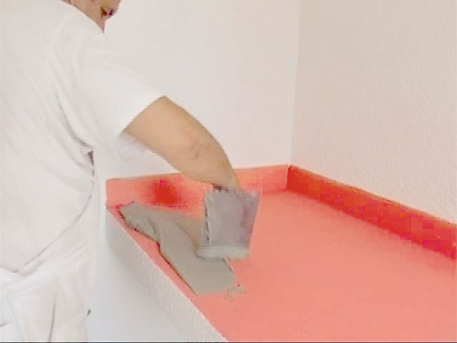 Po dôkladnom premiešaní zmesi sa na vonkajšom okraji balkóna vytvorí pomocou zubového hladidla lôžko (hrúbka 1 až 2 mm), do ktorého sa uloží odkvapová lišta.