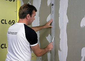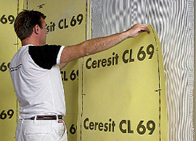 | Na záver dotlačte celú izolačnú vrstvu do malty gumovým valčekom alebo hladkou stranou hladidla, aby ste zabezpečili potrebnú rovinnosť. | Na stenách možno na takto pripravenú vrstvu utesnenia CL 69 Ultra-Dicht ihneď lepiť obkladové prvky lepiacimi maltami CM 16, CM 17, CM 22 alebo CM 25. |