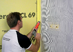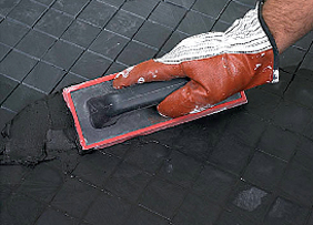 | Naneste na podklad lepiacu maltu CM 16, CM 17, CM22 alebo CM 25 zubovou stierkou (veľkosť zubov 4 mm) a položte CL 69 Ultra-Dicht do maltového lôžka kým malta nezaschne na povrchu. | Jednotlivé presahy podložky zlepte a utesnite tmelom Ceresit FT 101. Tmel aplikujte v dvoch pruhoch vedľa seba. |