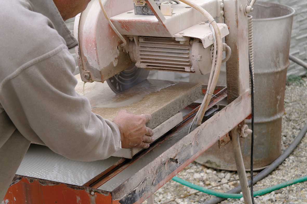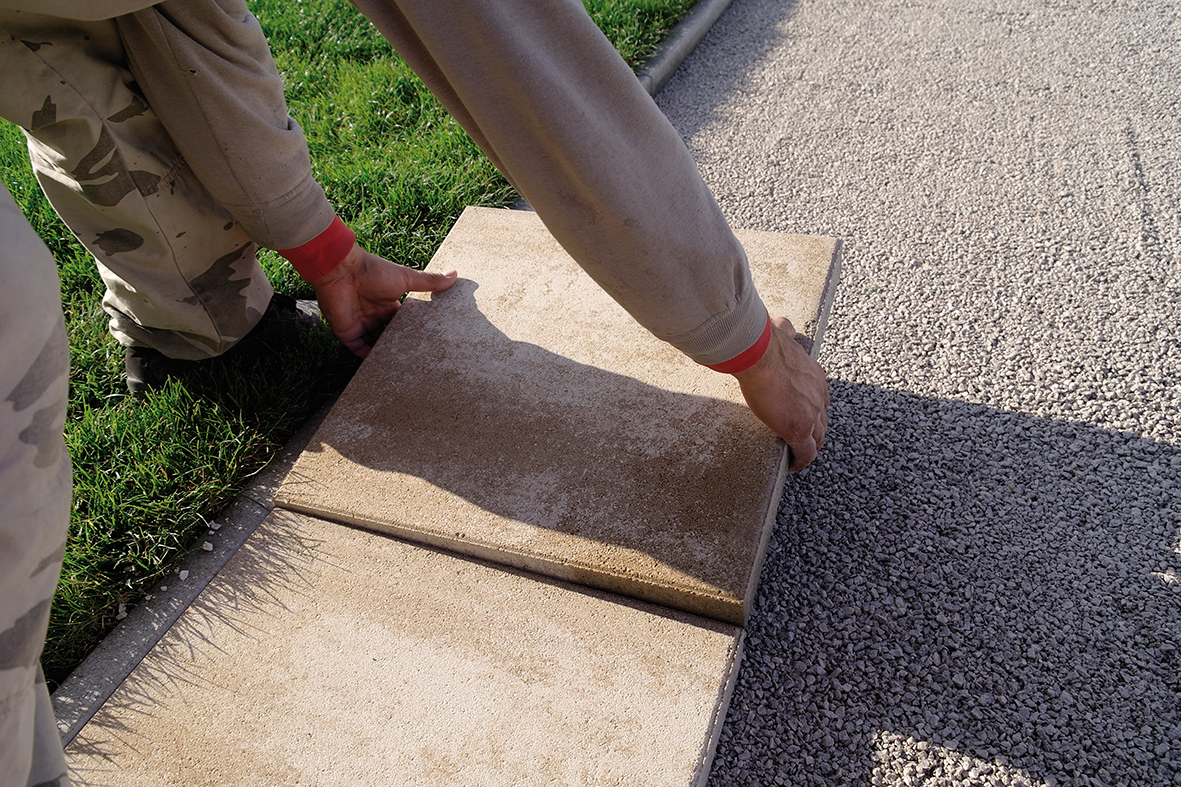Dlažba sa začína klásť od záhradných obrubníkov smerom k bazénu. Jednotlivé platne sa kladú opatrne do štrkového lôžka.
