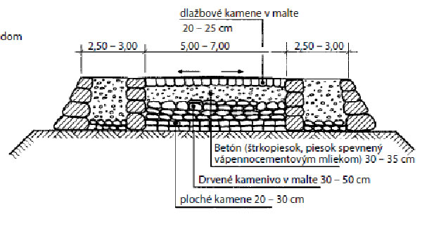 Celá konštrukcia vozovky zodpovedá obdobiu, v ktorom sa stavala a aké dopravné zaťaženie bolo treba preniesť.