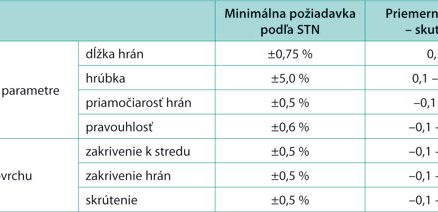 Tab. 1: Plnenie požiadaviek STN EN ISO 10545-2