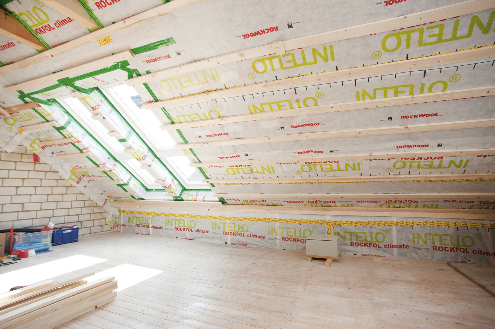 Opláštenie podkrovia sadrovláknitou doskou pohlcujúcou škodliviny a emisie