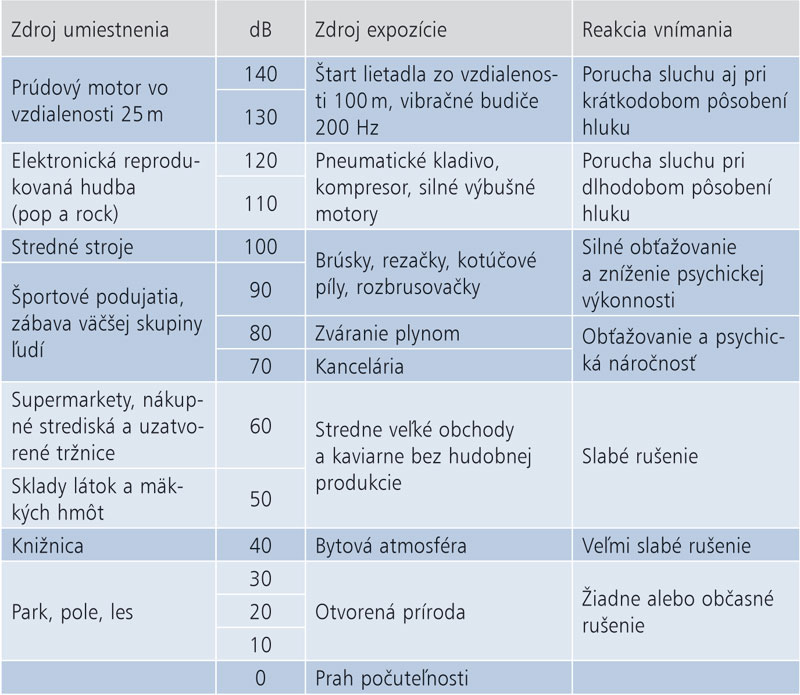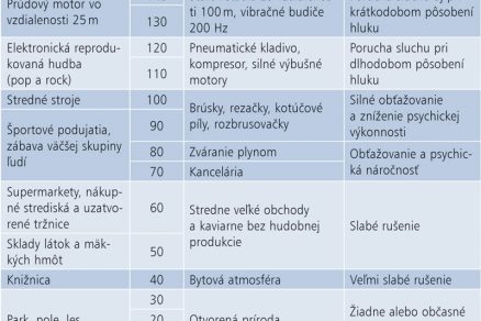 Pre názornosť uvádzame v tabuľke rôzne akustické tlaky jednotlivých zdrojov hluku a ich účinky na organizmus človeka.