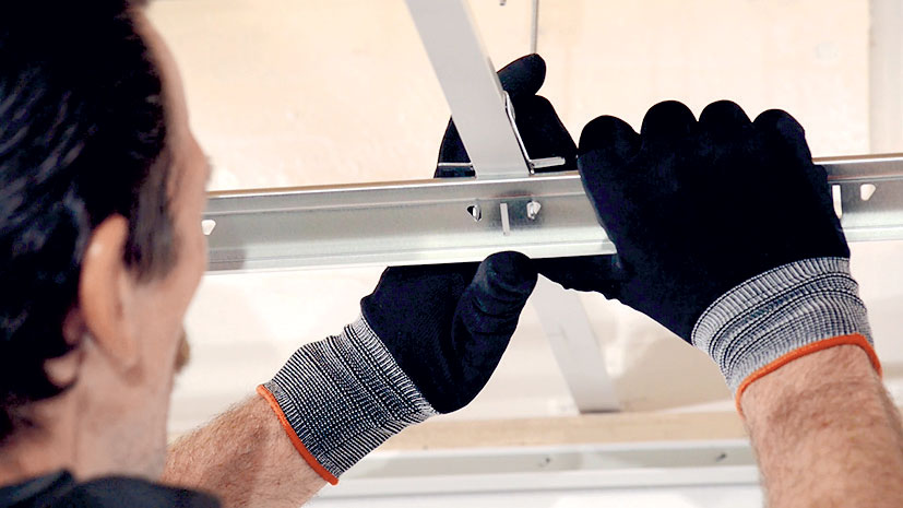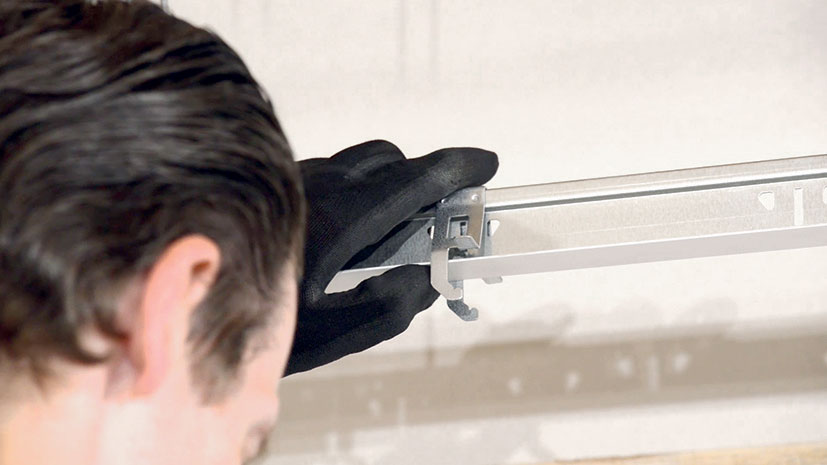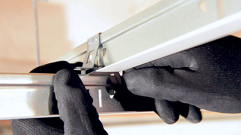 Po vymeraní podhľadu, montáži obvodových profilov a montáži závesov sa montuje primárny profil.