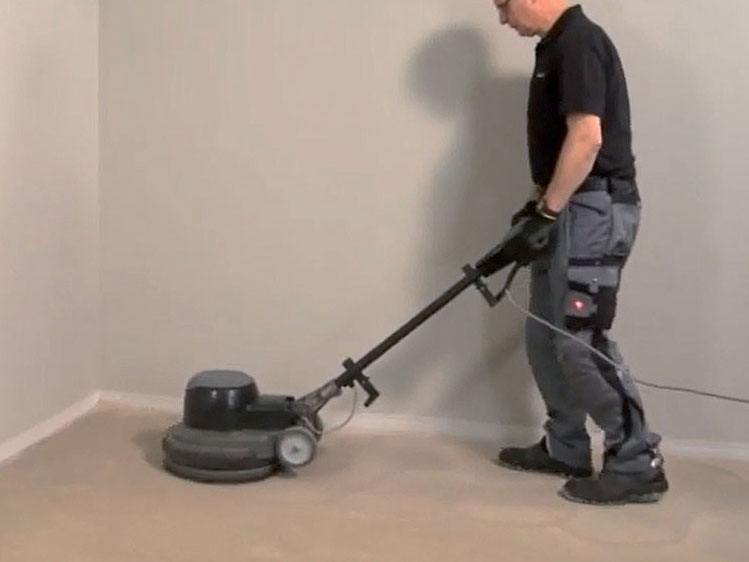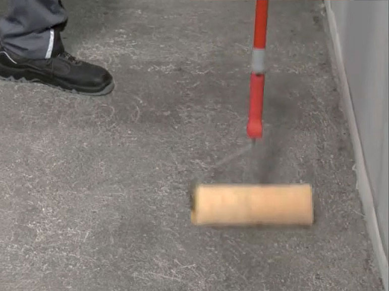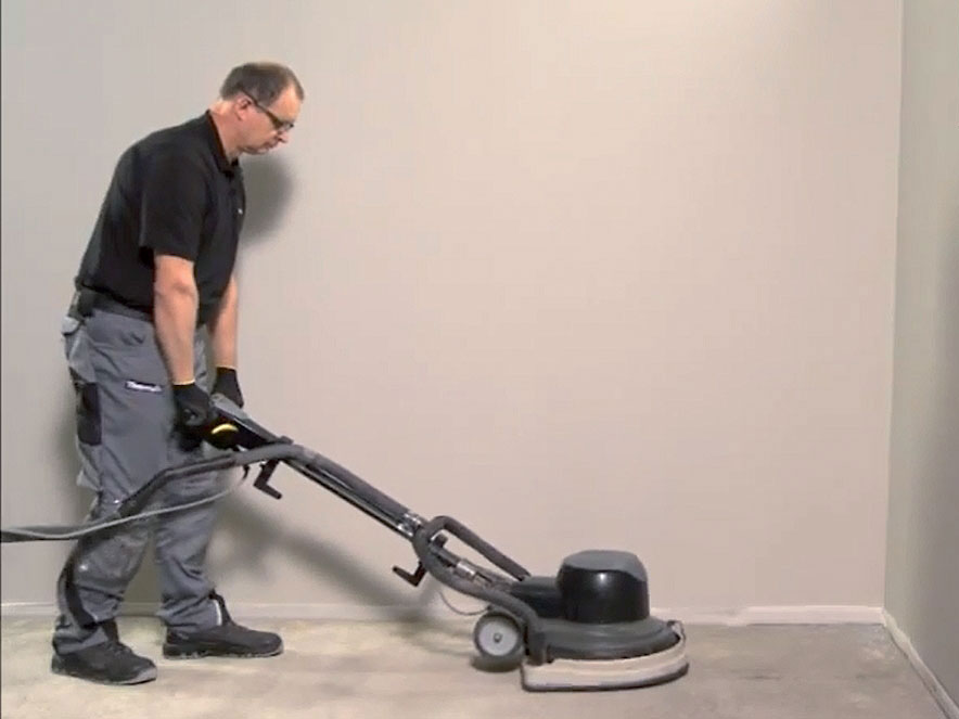 Zvyšky starých lepidiel a nečistôt sa mechanicky odstránia pomocou brúsky. Rovnako sa mechanicky odstráni existujúci cementový povlak a celý povrch sa dôkladne povysáva. Teplota podlahy musí byť minimálne 15 °C