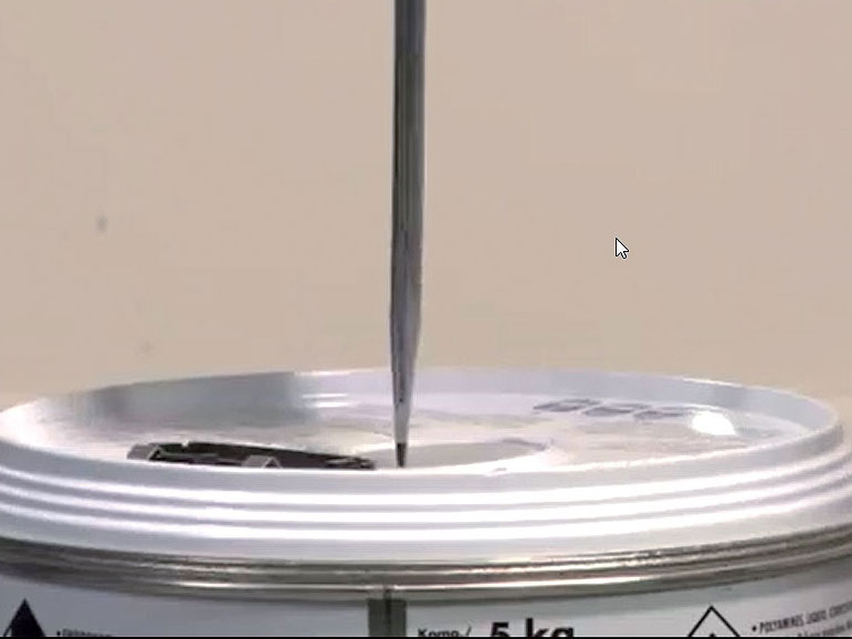 Epoxidový penetračný náter sa skladá z dvoch zložiek – živice a tvrdidla –, ktoré sa dodávajú v oddelených nádobách. Pomocou skrutkovača sa na viacerých miestach prerazí dno hornej nádoby.