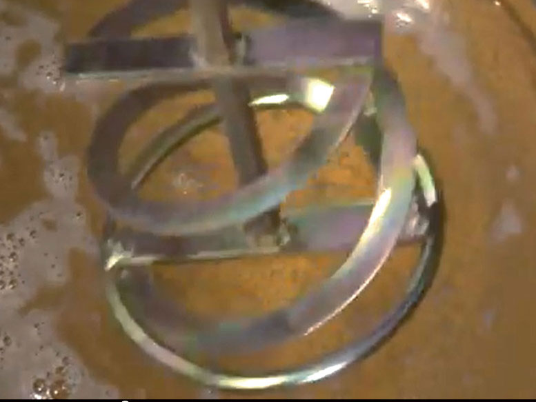 Obsah hornej nádoby sa nechá úplne vytiecť do dolnej nádoby. Potom sa vrchný diel nádoby zloží.