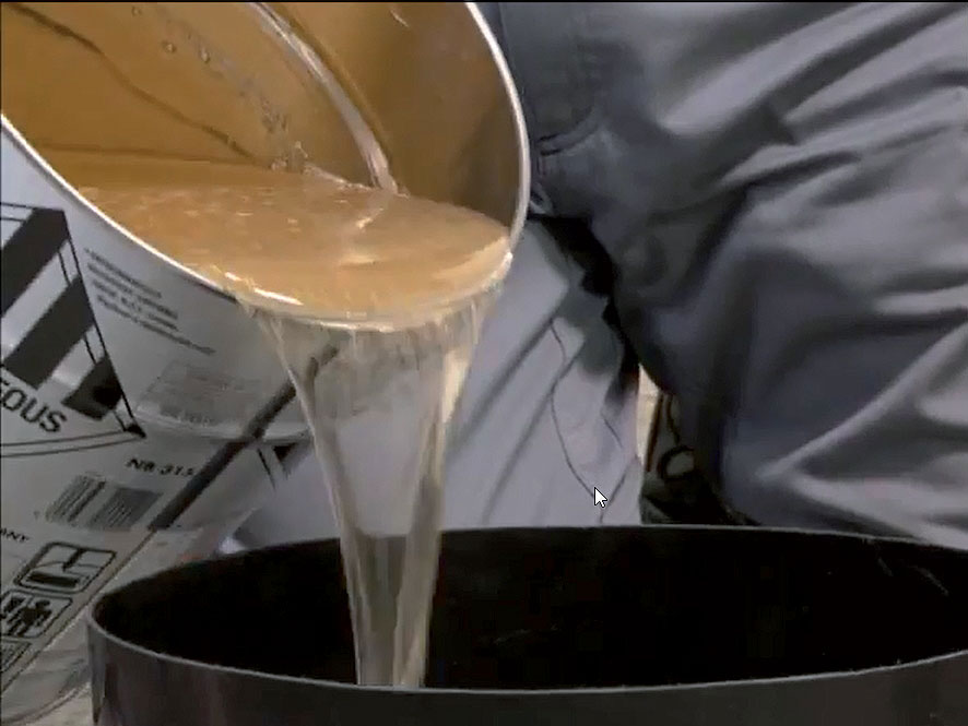 Živičná a tvrdidlová zložka sa opatrne zmiešavajú pomocou vŕtačky s miešadlom dve minúty.