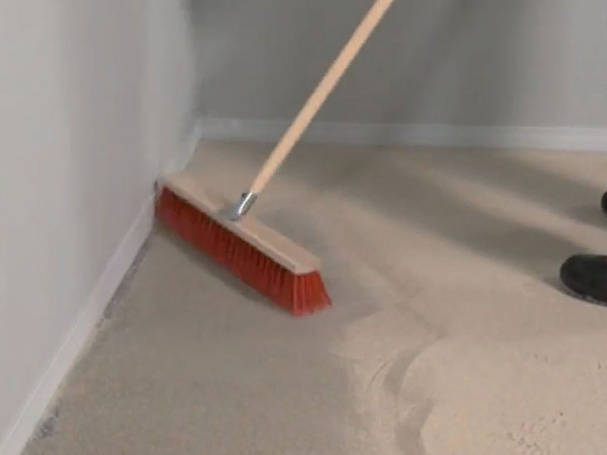Nakoniec sa celý povrch dôkladne povysáva priemyselným vysávačom. Na podklad očistený od piesku sa môžu po 48 hodinách priamo aplikovať samonivelačné stierky, príp. lepiť drevené parkety.