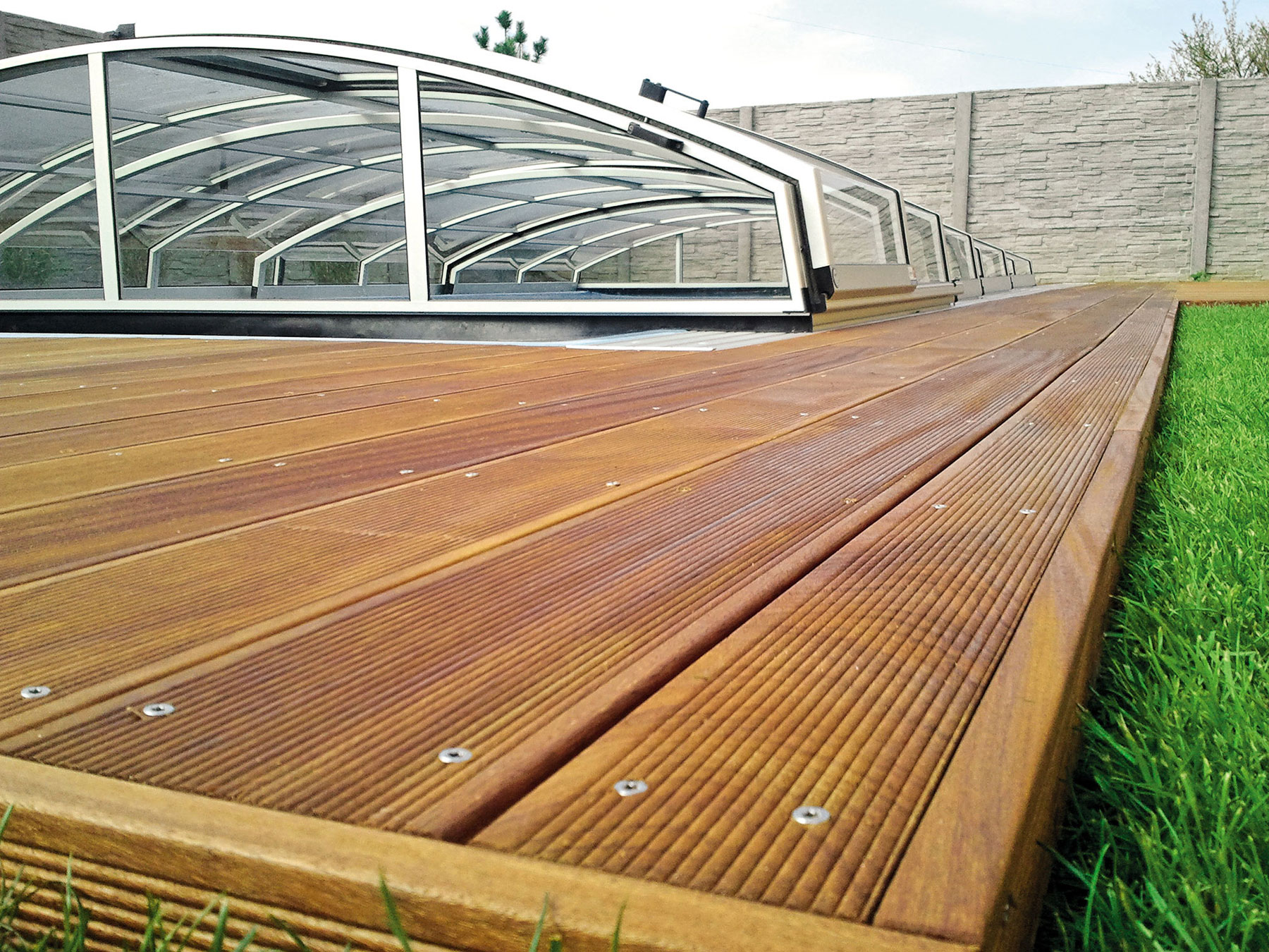 Povrch terasových dosiek nie je klzký, a to ani vtedy, ak je drevo navlhčené. Dokonca nezáleží na tom, či sú dosky na povrchu jemne drážkované alebo sú úplne hladké. Táto vlastnosť vyslovene predurčuje drevo na použitie okolo bazénov, pri ktorých je bezpečný pohyb jedným z hlavných kritérií pri výbere vhodného materiálu a povrchu. Exotické dreviny CUMARU a IPE ponúkané spoločnosťou Najkrajšie terasy najlepšie odolávajú priamemu pôsobeniu vody a sú vhodné pri všetkých typoch bazénov – aj v prípade najmodernejších bazénov so slanou vodou –, pričom drevo si nevyžaduje špeciálnu starostlivosť. Exotické drevo je vďaka svojej tvrdosti, hustote a pevnosti vhodné aj na použitie v priestoroch súkromných a verejných wellness, kde položenie a umiestnenie víriviek s veľkou hmotnosťou na drevenú terasu nemôže spôsobiť žiaden problém.