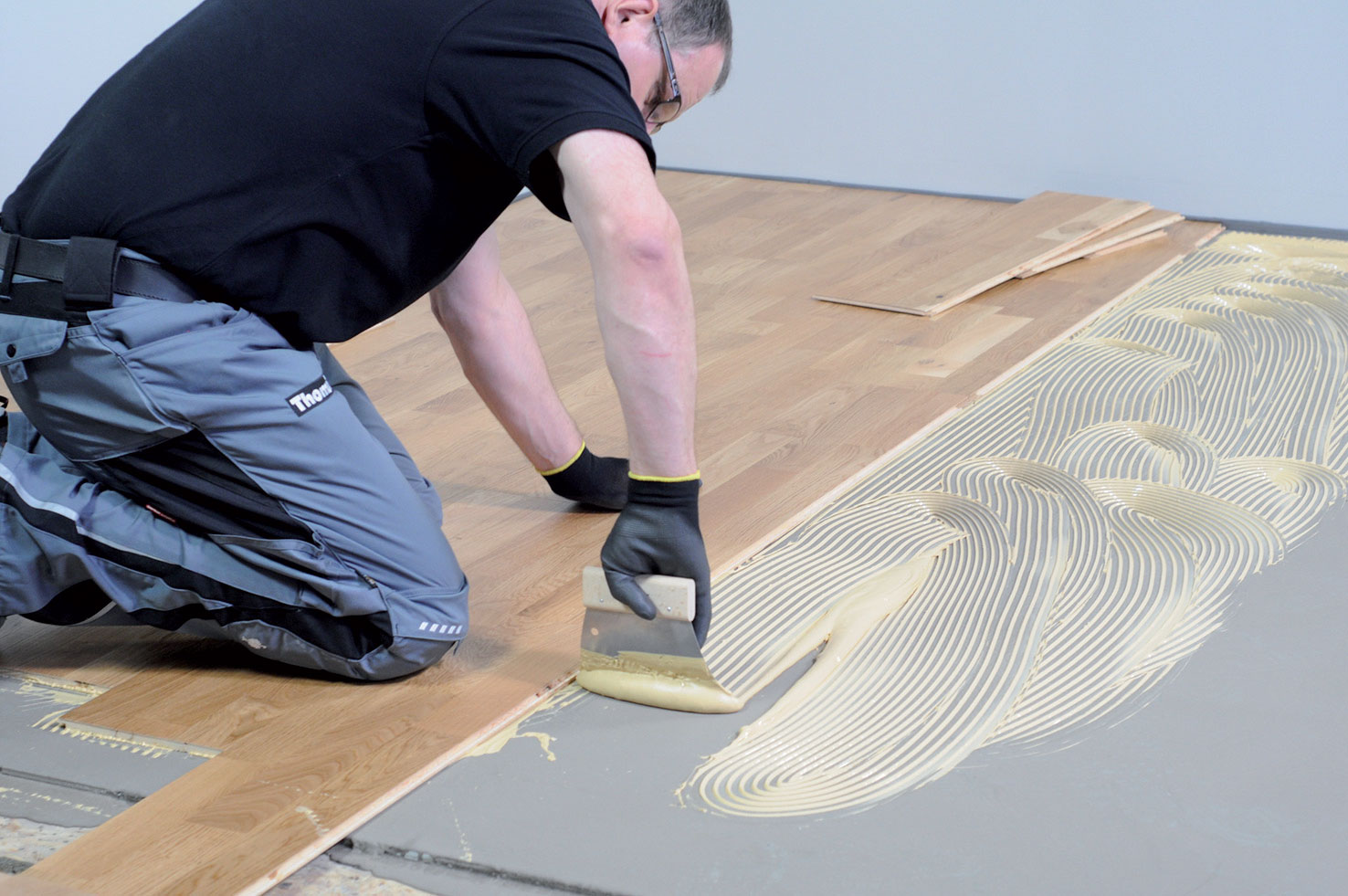 Zároveň treba zabrániť kontaktu lepidla s povrchovou úpravou, ktorá sa aplikuje na drevenú podlahu.