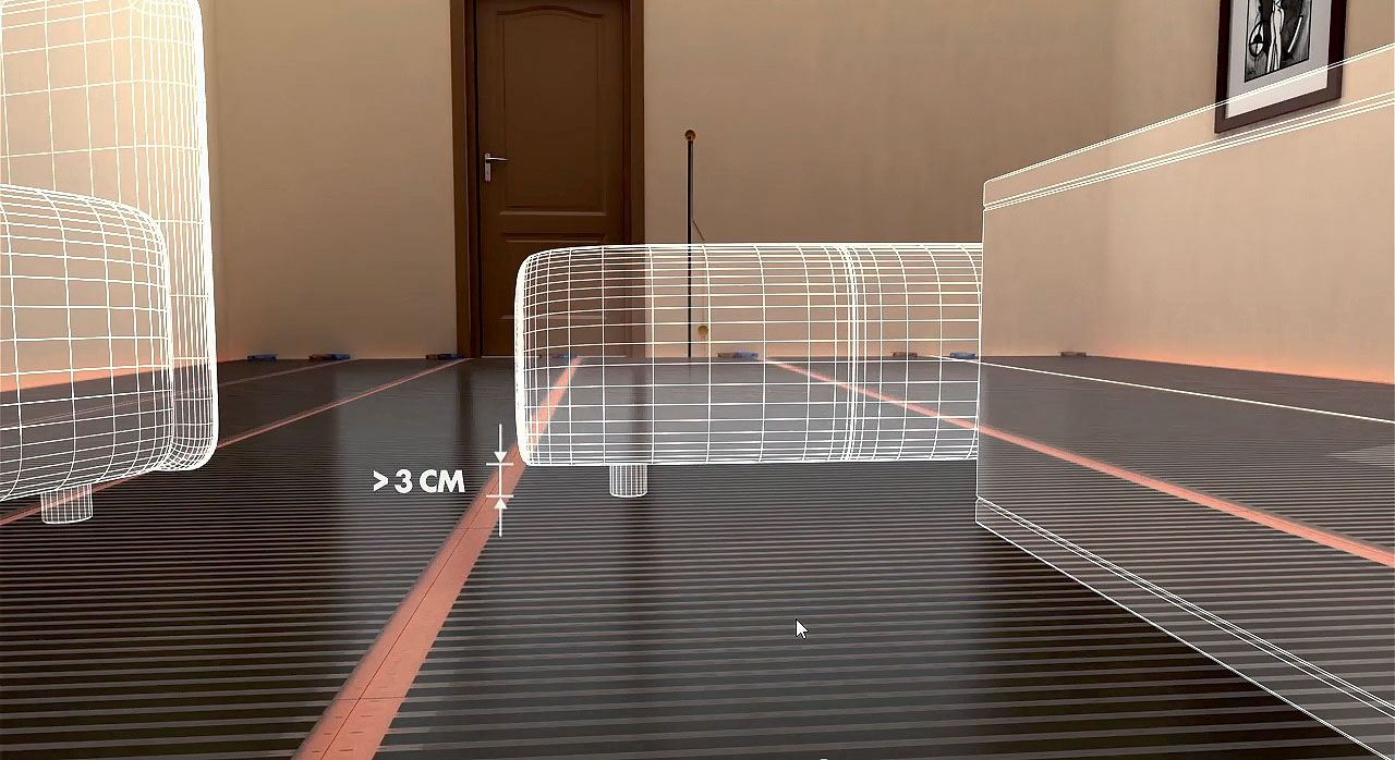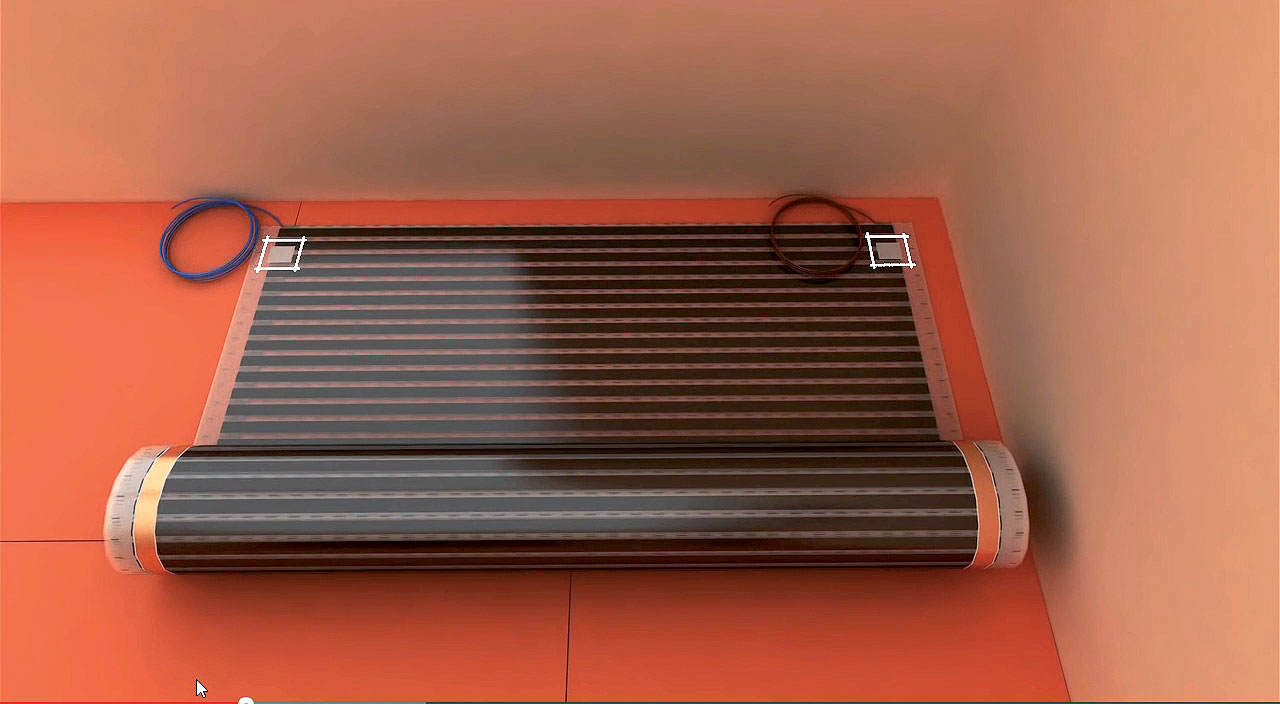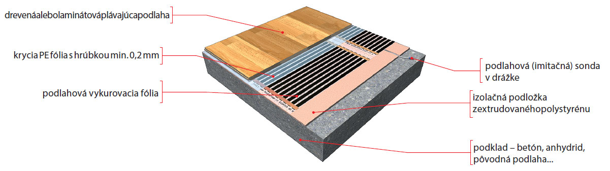 Po vyfrézovaní prípojných bodov a drážok sa pripojí podlahová sonda, ktorá sa inštaluje do vykurovacej časti podlahy (min. 300 mm). Podlahová sonda termostatu sa uloží čo najbližšie k povrchu podlahy, avšak pri kladení pod laminátovú podlahu sa uloží tesne pod vykurovaciu fóliu do vyhĺbenej drážky.