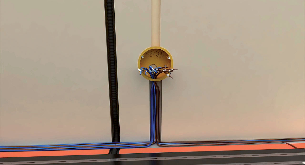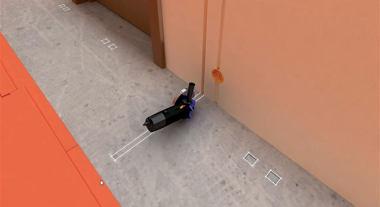V podklade sa na vyznačených miestach pomocou ručnej frézy vyfrézujú prípojné body a drážky, do ktorých sa vloží ochranná trubica (tzv. husí krk) s dostatočným priemerom alebo v zodpovedajúcom množstve. Jedna súprava fólie má dva vodiče s priemerom 3 mm (päť súprav = zväzok vodičov s priemerom 30 mm).