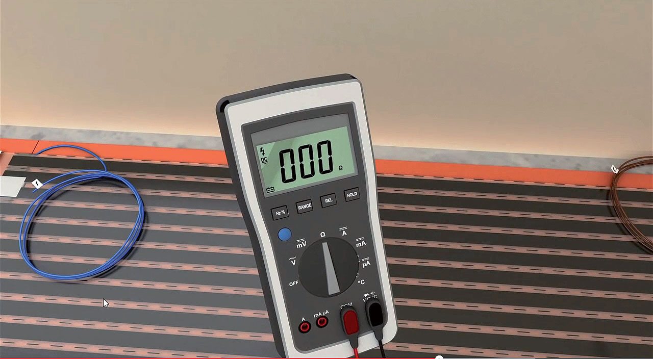 Po položení pásov vykurovacej fólie sa jednotlivé pásy zmerajú ohmmetrom (ešte pred uložením podlahovej krytiny) a skontrolujú sa hodnoty odporu podľa tabuľky v návode na inštaláciu (úvodná strana). Odchýlky musia byť v tolerancii +5 % až –10 % (pri skracovaní fólie sa musia hodnoty prepočítať).