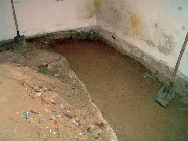 Obr. 1a, b, c Odstránenie pôvodných vrstiev podláh, realizácia výkopu do potrebnej hĺbky