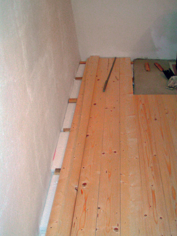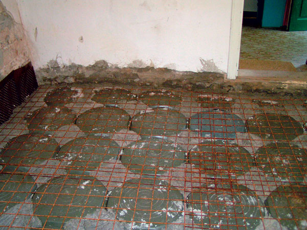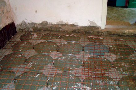 Na pevný suchý betón sa následne položí tepelná izolácia (napríklad polystyrén s hrúbkou 50 mm), vytvorí sa vrstva betónovej mazaniny s hrúbkou minimálne 40 mm a nové nášľapné vrstvy podlahy (obr. 10, 11).