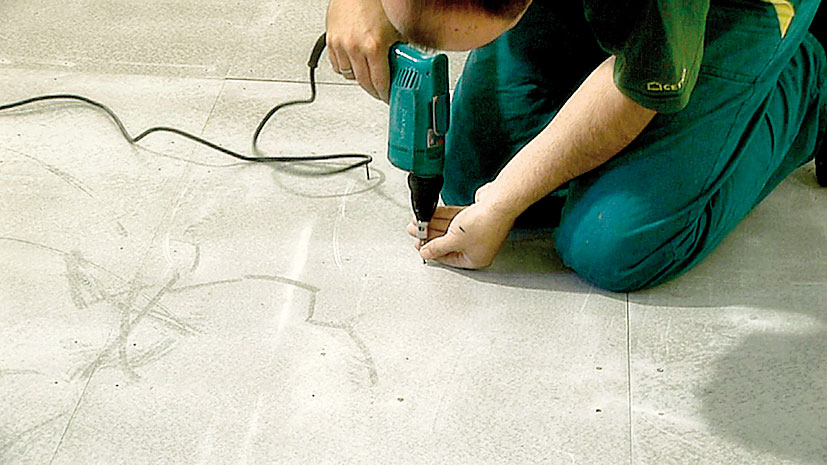 Podlahové dosky sa musia ihneď po uložení spojiť samoreznými skrutkami s priemerom 4,2 mm, dĺžkou 35 mm a so zápustnou hlavou. Skrutky sa vkladajú do predvŕtaných otvorov. V prípade dorezávania dosiek sa musia skrutky umiestňovať 25 až 50 mm od ich okraja. Maximálna vzdialenosť medzi jednotlivými spojovacími prvkami je 300 mm.