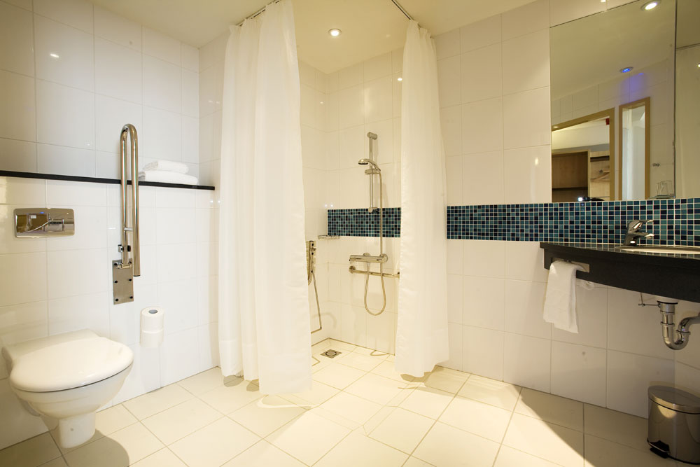Základom je aplikácia hydroizolačnej stierky na starostlivo vyčistený a odmastený podklad, ktorého nasiakavosť je zjednotená penetračným náterom. Vhodné je použiť tekutú a rýchloschnúcu hydroizolačnú stierku. Dôkladné vyhotovenie je nevyhnutné predovšetkým pri nanášaní stierky na prechodoch medzi stenou a podlahou, v rohoch a v miestach okolo odtokov, výpustov a dilatácií. Všetky tieto detaily treba utesniť pogumovaným pásom, ktorý sa vkladá do prvej vrstvy hydroizolačnej stierky. Následne sa nanesie druhá vrstva hydroizolačnej stierky. Po vytvrdnutí hydroizolačnej stierky sa môže prejsť k lepeniu dlažby flexibilným lepidlom. Vzniknuté škáry medzi obkladovými prvkami sa vypĺňajú cementovou škárovacou maltou s nízkou nasiakavosťou alebo epoxidovou škárovacou maltou, ktorá je absolútne nenasiakavá a odolná proti znečisteniu. Na výplň dilatačných škár slúži pružný silikónový tmel alebo sa použijú hotové dilatačné profily s pružným pásom.