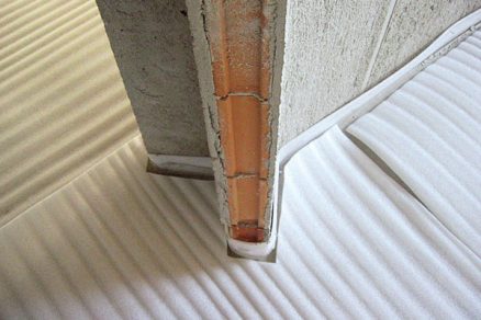 Na oddelenie poterovej dosky od zvislých konštrukcií a všetkých vystupujúcich prvkov sa aplikuje okrajová dilatačná páska. Pripravia sa konštrukčné a pohybové škáry.