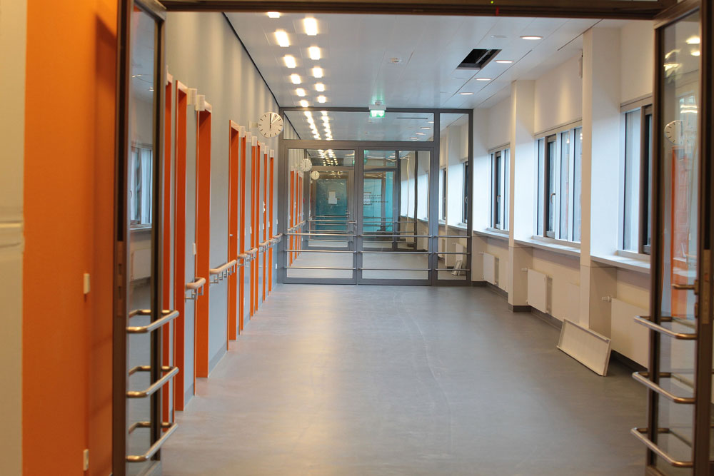 Na Ulmskej klinike sa nalepilo približne 32 000 štvorcových metrov linolea a 3 500 štvorcových metrov kobercov.