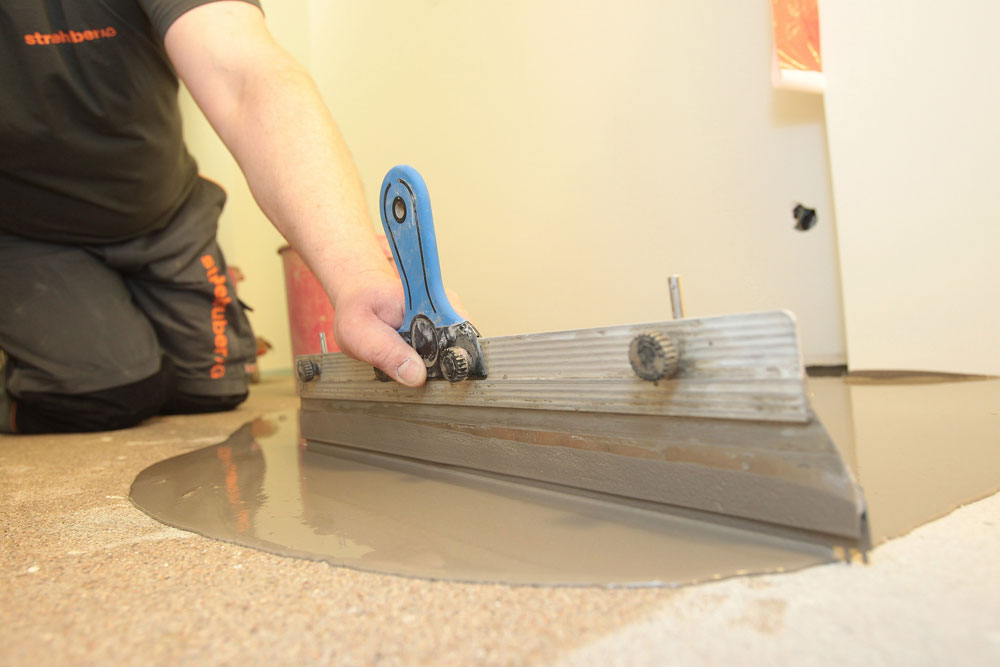 Na všetkých kontrolných otvoroch využil tím Straehuber AG špeciálne fixačné pásky Thomsit DT 700 z radu Drytack. Tieto pásky so šírkou 16 cm sú vysokozaťažiteľné, pevné a sú určené na podlahové krytiny – linoleum s hrúbkou do 3,2 mm, CV a homogénne PVC, schodové profily na báze PVC, koberce, ako aj na schody a podesty s veľkosťou do 5 m2. Páska s obojstranne lepiacou vrstvou sa pritlačí na podkladovú vrstvu a následne sa z nej odstráni krycí papier. Nahrádza kontaktné lepidlá na báze rozpúšťadiel. Má nízky obsah vlhkosti, a preto ju možno použiť bez potreby odvetrávania alebo dlhého času schnutia.