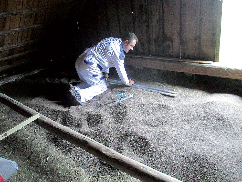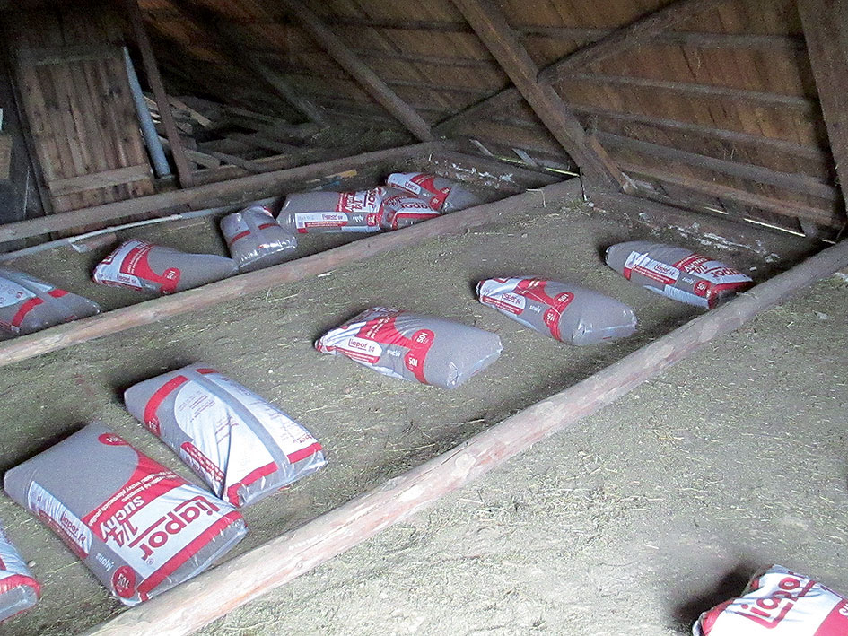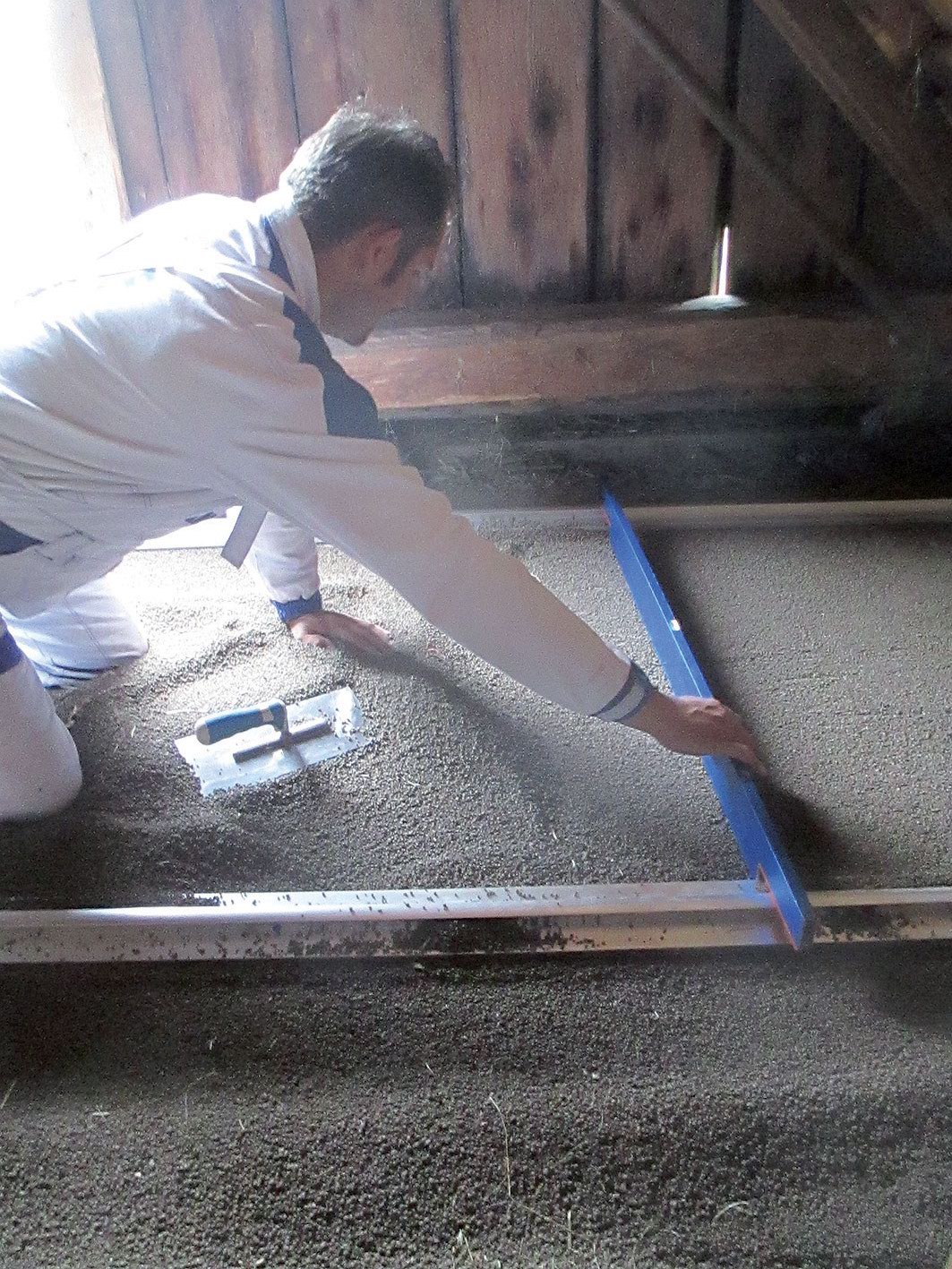 Podsyp z ľahkého keramického kameniva sa rozprestrie, urovná a zhutní ručne latou a hladidlom (do hrúbky 50 mm). Väčšie hrúbky sa kladú po vrstvách a zhutnia vibračnou latou. Podsyp sa pred uložením sadrokartónových dosiek provizórne zakryje drevotrieskovými alebo drevovláknitými doskami, po ktorých možno chodiť.
