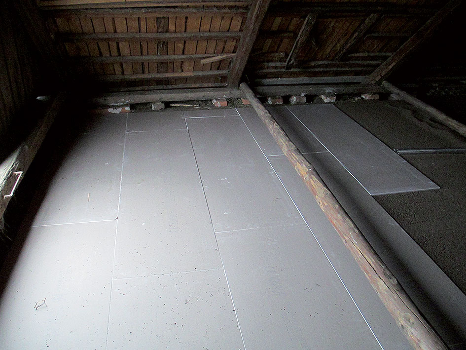 Z dôvodu zníženia krokového hluku možno podlahu klásť na minerálnu izoláciu alebo na drevovláknitú izolačnú dosku.