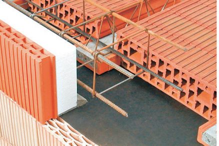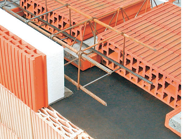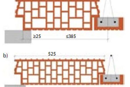 Obvodové stužujúce vence sa v prípade trámových stropov najčastejšie realizujú v úrovni stropnej konštrukcie. Na vonkajšie obmurovanie stropnej konštrukcie možno použiť keramické vencové tehly. Vencovými tehlami sa zo strany exteriéru vytvára jednotný tehlový podklad vhodný na následnú realizáciu povrchovej úpravy – omietky a spoločne s vloženým tepelným izolantom (napríklad polystyrénom minimálne s hrúbkou 100 mm) sa zabezpečuje požadovaná tepelná izolácia venca po celej hrúbke stropu (obr. 6).