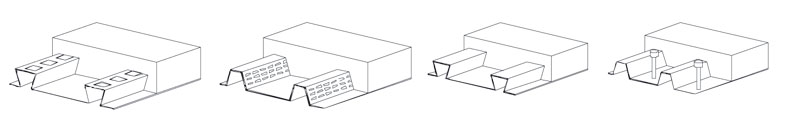 Obr. 1 Typické spôsoby spriahnutia v plechobetónových doskách