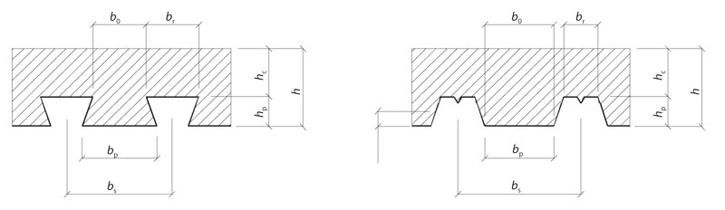 Výhodou plechobetónových dosák je, že profilovaný plech prenáša tiaž čerstvej betónovej zmesi a montážne zaťaženie, a preto netreba vyhotovovať debnenie. Spolupôsobenie, ktoré vzniká súdržnosťou medzi plechom a betónom, sa zo statického hľadiska nemôže uplatniť, pretože ho ovplyvňuje veľa faktorov, ako napr. povrchová úprava (pozinkovanie), znečistenie a pod. Z tohto dôvodu sa so súdržnosťou pri prenose pozdĺžneho šmyku nepočíta a spriahnutie sa zabezpečuje (obr. 1):