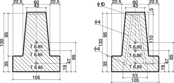 Nosníky majú tvar obráteného písmena T (obr. 1 až 3) a vyrábajú sa v dĺžkach od 1,0 m do 8,0 m, v násobkoch po 10 cm. Vrchná plocha nosníka je vrúbkovaná, a tak zaisťuje priľnavosť k nadbetonávke. V záujme zabezpečenia dostatočného ukotvenia oceľovej výstuže nosníka v železobetónových vencoch je oceľová výstuž vypustená z telesa nosníka minimálne v dĺžke 8 cm. Stropné nosníky určené na najväčšie rozpätia sú dodatočne zosilnené priestorovou priehradovou výstužou umiestnenou v strednej časti prierezu stropného nosníka.